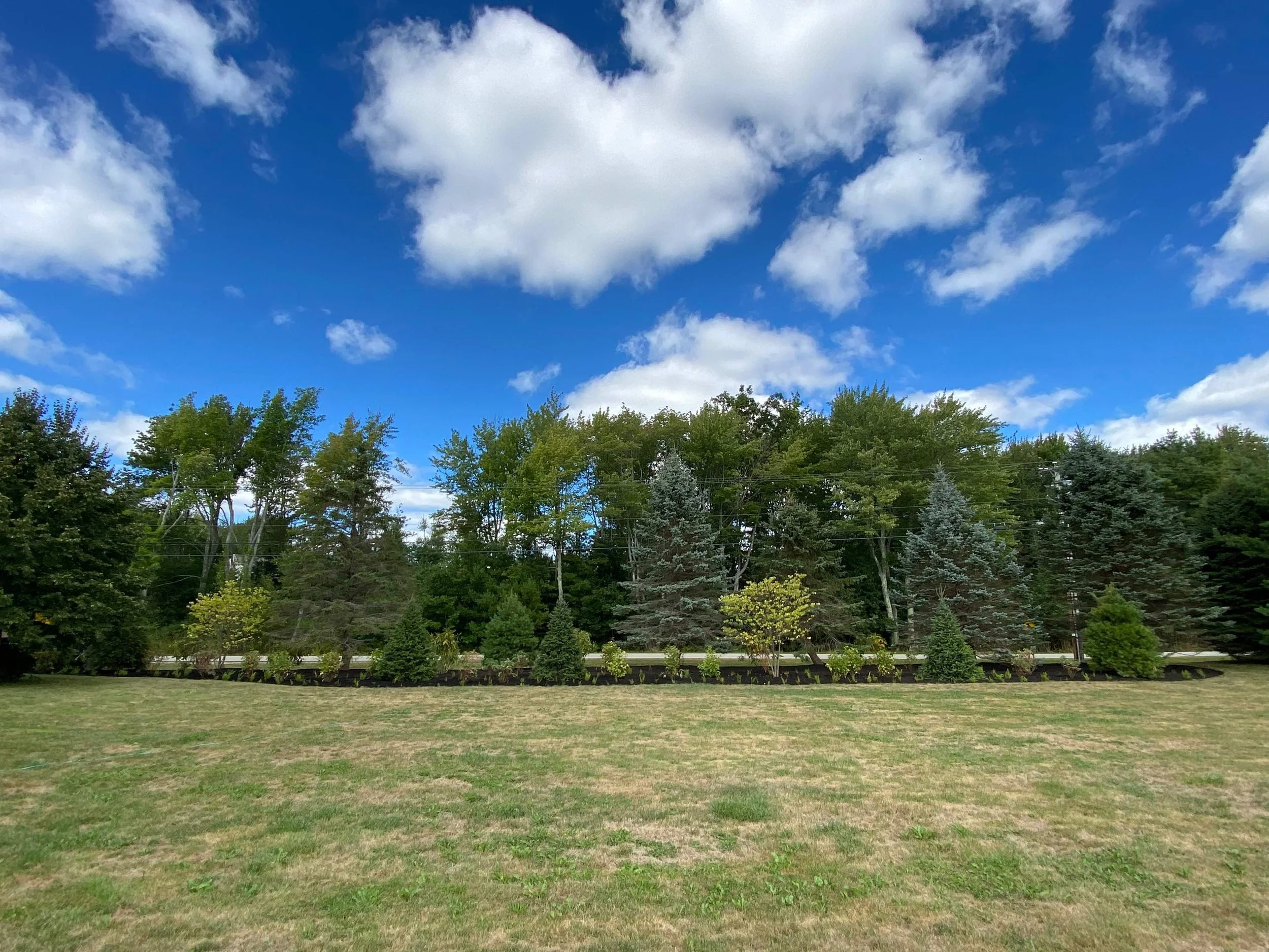New plantings merge with existing evergreens to create a roadside buffer